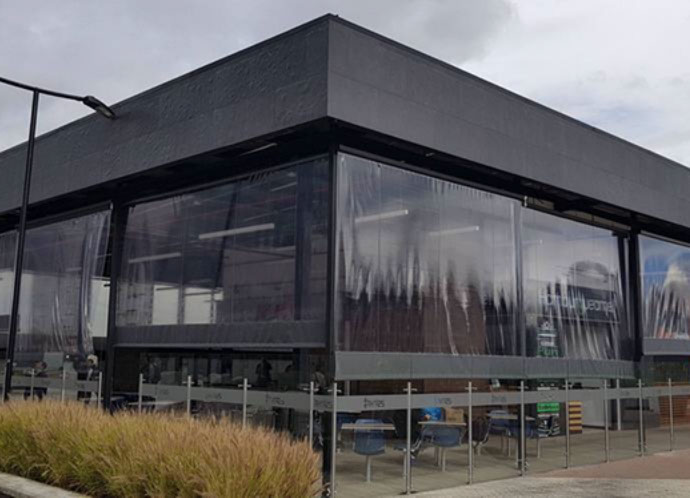 Elaborados en PVC transparente o en PVC transparente con diseño. El contorno de los toldos puede ser en PVC (green, black o white) o en lona acrílica (diversos colores).
